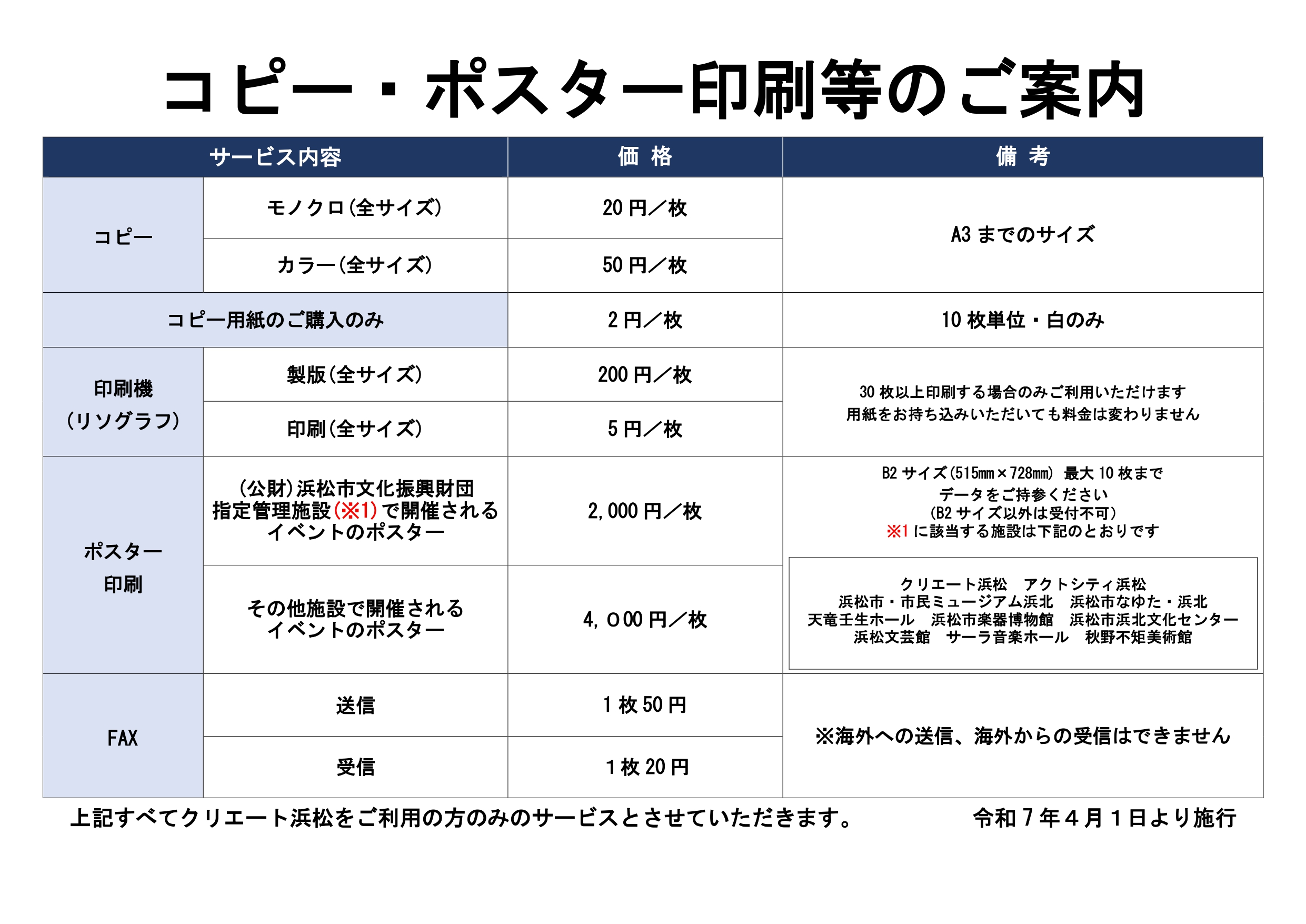 2025年4月1日よりコピー・ポスター印刷等の料金を改定いたします。