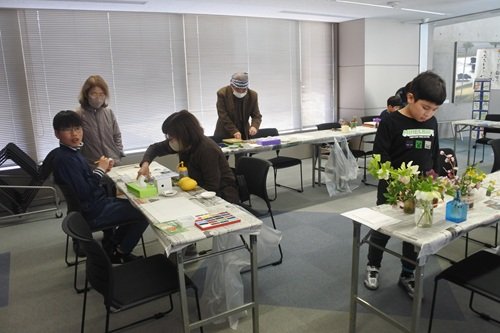 参加者は好みの題材を選び、思い思いに筆を走らせていました。![]()