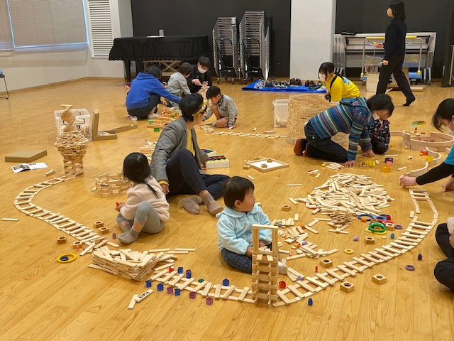 こちらもこども健康学科の学生さんによる知育玩具を活用して、遊びながら図形の特長やデザインを学ぶことができる体験型ワークショップです。