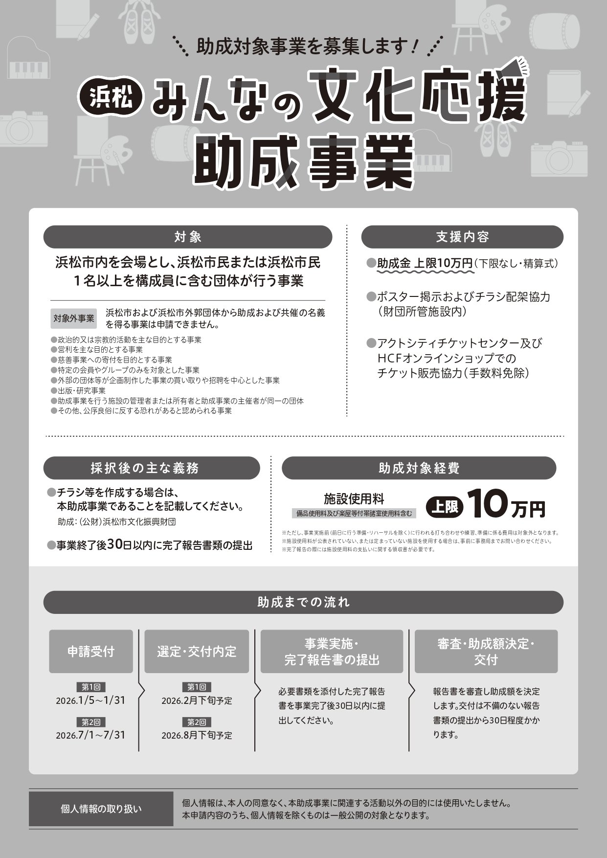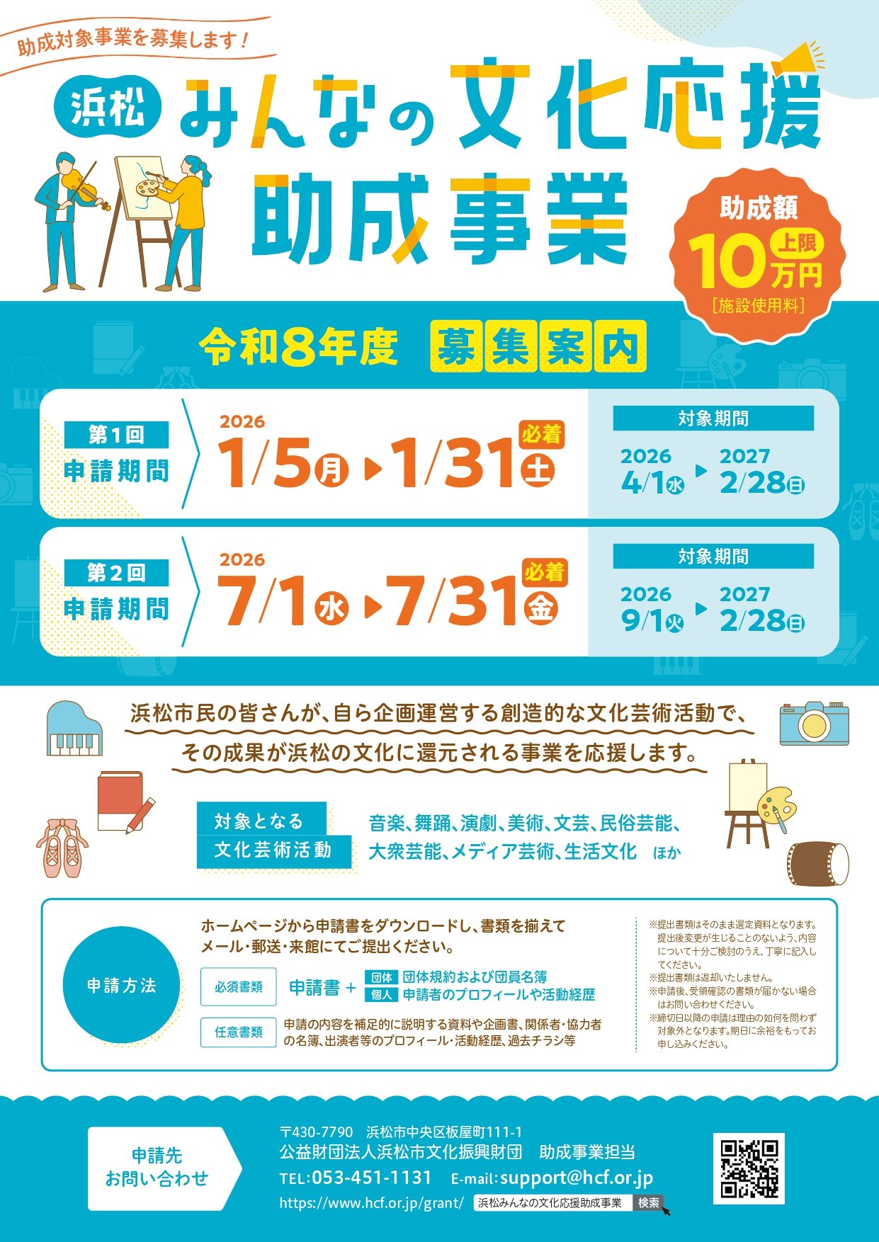 令和8年度浜松みんなの文化応援助成事業につきましては、現在ご案内ページを準備しております。