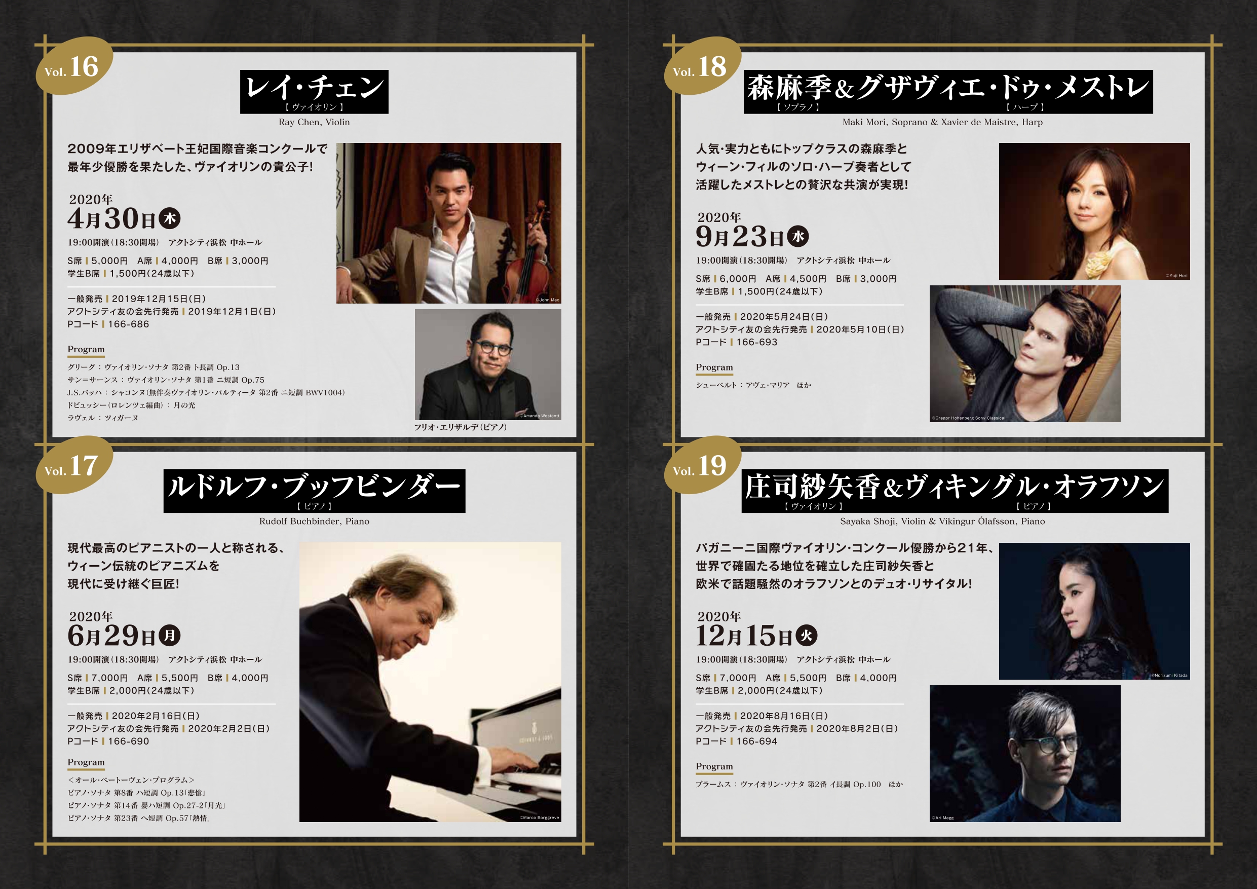最上の響きをもつアクトシティ浜松・中ホールで、浜松にいながらにして世界レベルの音楽をご堪能いただけます。