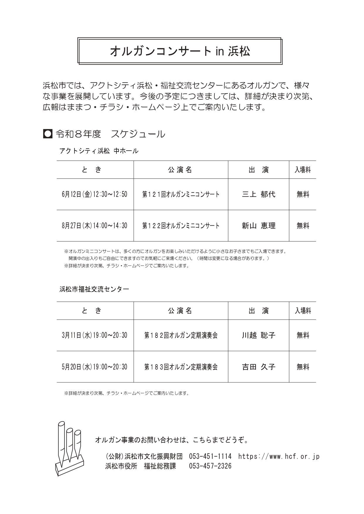 オルガンコンサート in 浜松 令和7年度スケジュール