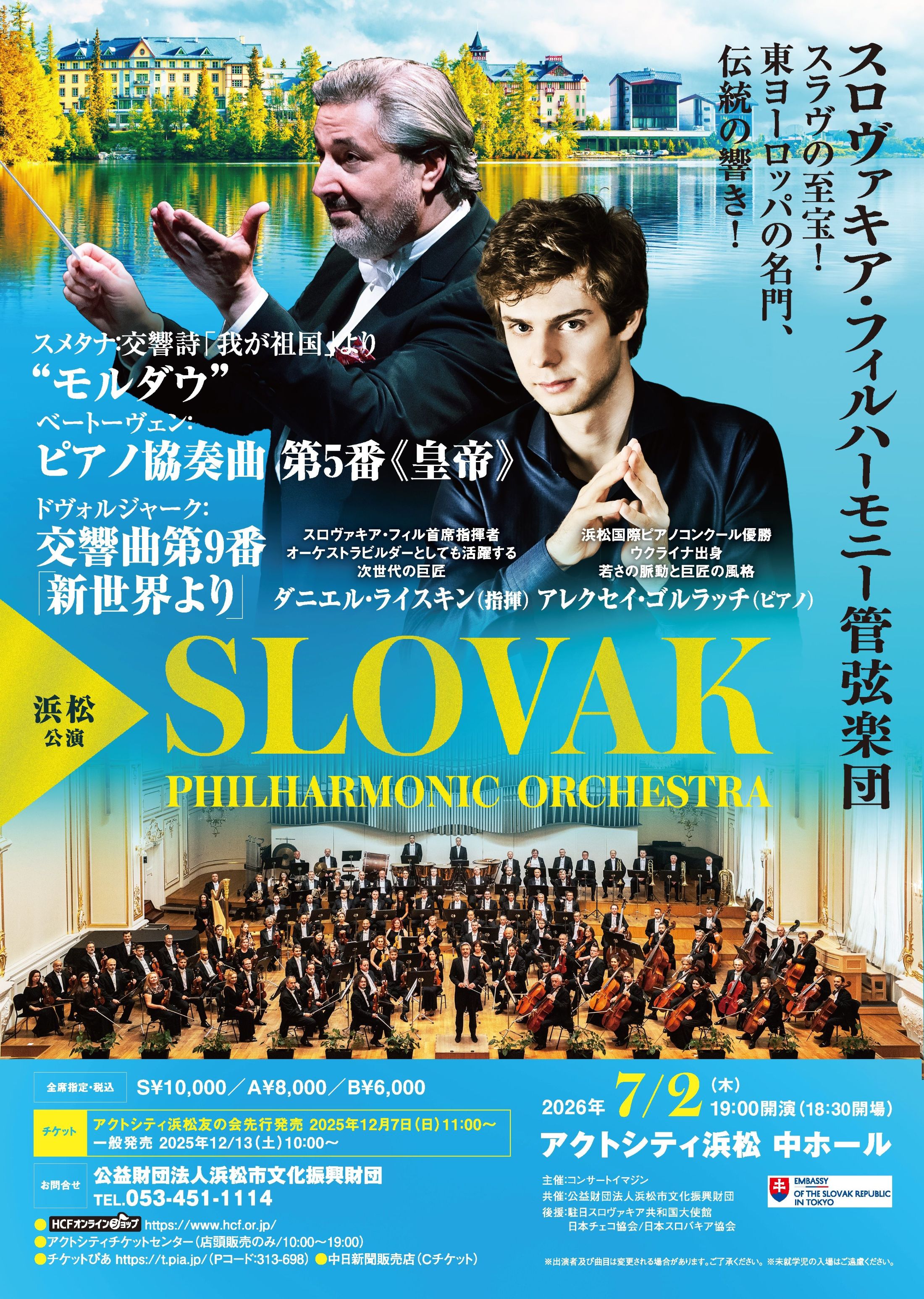 「スラヴの至宝」とも呼ばれ、1980年の初来日以来、卓越したアンサンブルと力強い演奏、民族的な色彩感で高い評価を得て、日本でも多数のファンを獲得しているスロヴァキア・フィルハーモニー管弦楽団の浜松公演!