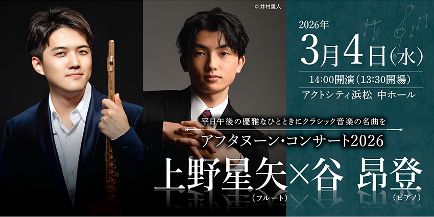 世界を舞台に活躍するフルート界の俊英 上野星矢と繊細なテクニックが光るピアノ界の新鋭 谷昂登が贈る極上のデュオ!